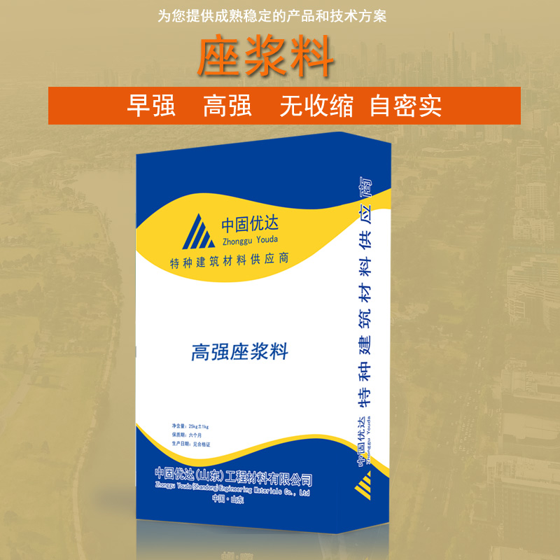 淄博高強座漿料 淄博座漿料是灌漿料的一種,由水泥作為結(jié)合劑、高強度細骨料、復合膨脹劑、減水劑等摻合料及其他外加復合材料組成的水泥基干混料,具有早強、高強度、微膨脹、無收縮、不流掛、易施工等性能,加水攪拌后具有觸變性、可塑性,硬化性保水性好,座漿料的使用可以避免其他灌漿料流動性過大,施工不易,顆粒太粗, 粘性差,泌水嚴重,開裂爆倉等現(xiàn)象。
